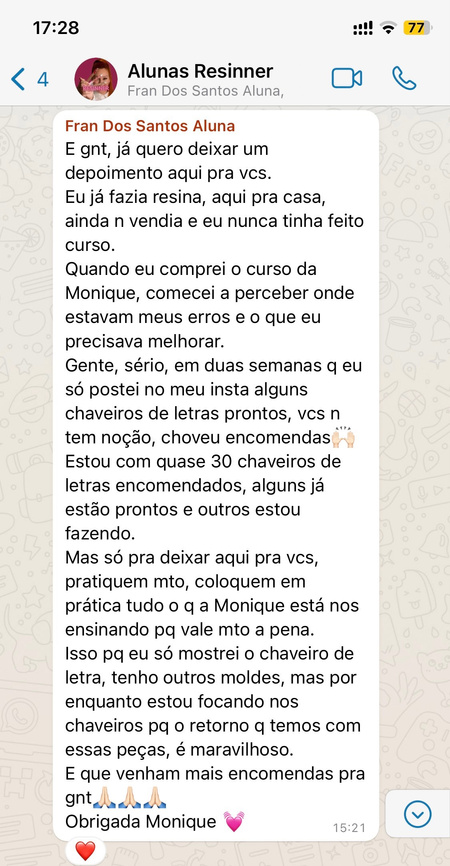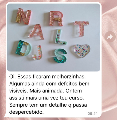 Após muita dedicação e estudos, testes, erros e acertos, consegui fazer da resina minha profissão e me tornar referência em minha cidade natal e quero ajudar você a transformar sua vida também.